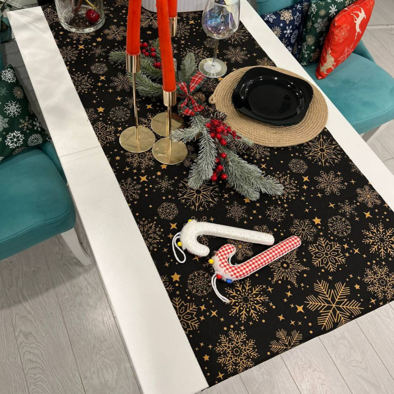 Эта дорожка не только украсит ваш стол, но и станет практичным дополнением к праздничному декору. Благодаря гидрофобному покрытию вы можете не беспокоиться о случайных проливах напитков или других загрязнений.