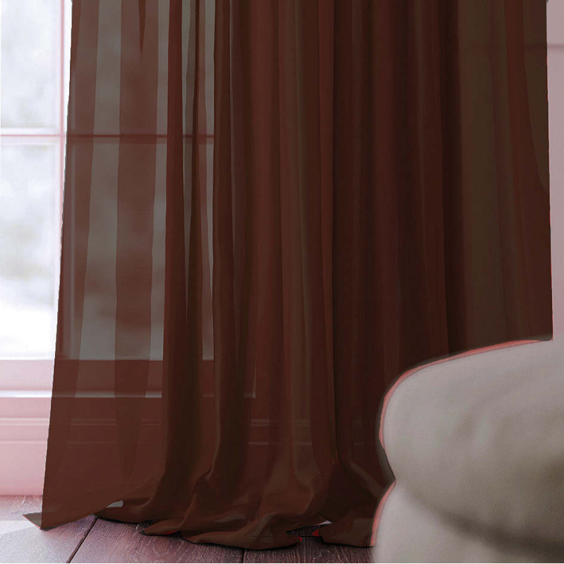 Готовий тюль вуаль Alana коричневий 300*270 см пошитий з популярної тканини вуаль білого кольору без синього відливу, структура тканини дуже схожа на шифон, основними перевагами є прозорість і практично матова структура. Зверху на тюль пришита прозора тасьма під гачки, а бічні рядки та низ зроблений з еталонним рівнем якості.