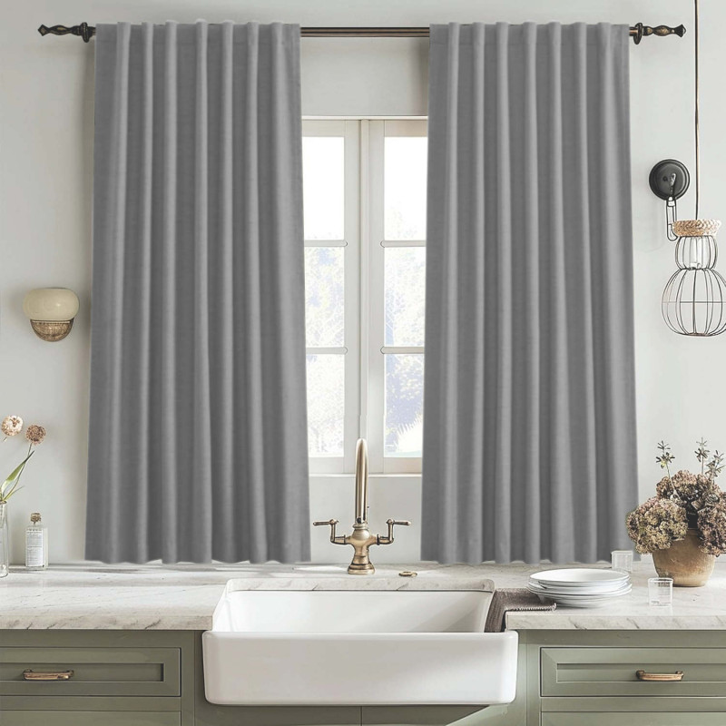 Оновіть інтер'єр вашого дому з комплектом коротких штор Блекаут у світло-сірому кольорі! Ці штори не лише додадуть елегантності вашій вітальні, спальні, кухні або дитячій, але й забезпечать вам комфорт та затишок.