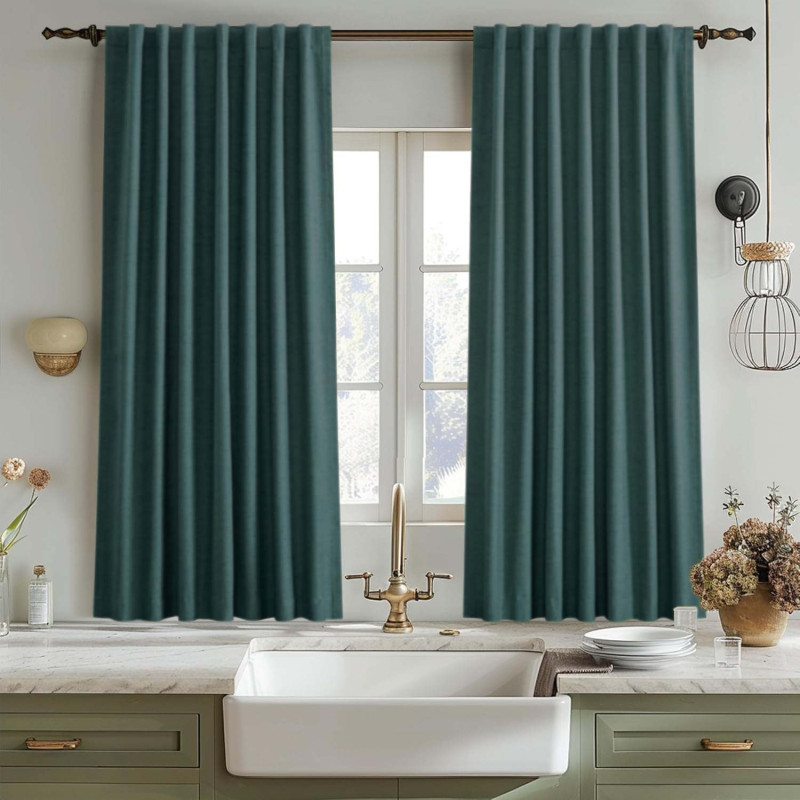 Оновіть інтер'єр вашого дому з комплектом коротких штор Блекаут у кольорі темна бірюза! Ці штори не лише додадуть елегантності вашій вітальні, спальні, кухні або дитячій, але й забезпечать вам комфорт та затишок.