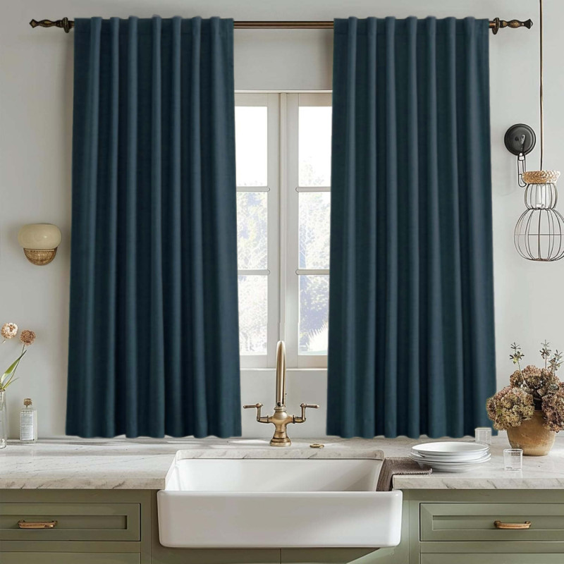 Оновіть інтер'єр вашого дому з комплектом коротких штор Блекаут у темно-синьому кольорі! Ці штори не лише додадуть елегантності вашій вітальні, спальні, кухні або дитячій, але й забезпечать вам комфорт та затишок.
