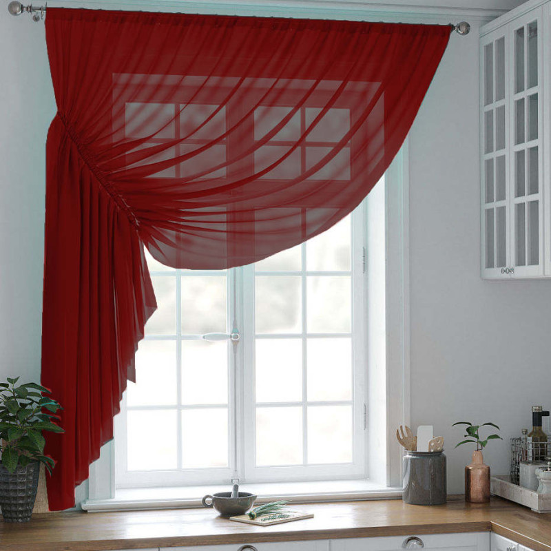Тюль на кухню Келлі бордовий 290*180 см, представляємо наш чарівний короткий тюль для кухні – чудове поєднання стилю та функціональності, розроблене, щоб підкреслити серце вашого дому ноткою химерної елегантності. Зробіть свій кухонний декор привабливішим за допомогою готовий тюль від інтернет-магазину Astory, яка додає м’яку, повітряну текстуру, одночасно пропускаючи природне світло.