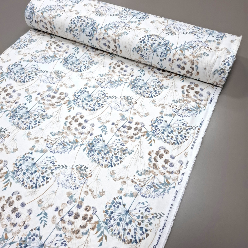 Тканина "Сухоцвіти" не тільки практична, а й надзвичайно стильна. Малюнок з квітів та рослин на білому фоні додає елегантності і сучасного вигляду вашому інтер’єру. Ця тканина чудово підійде для оформлення будь-якої кухні або їдальні.